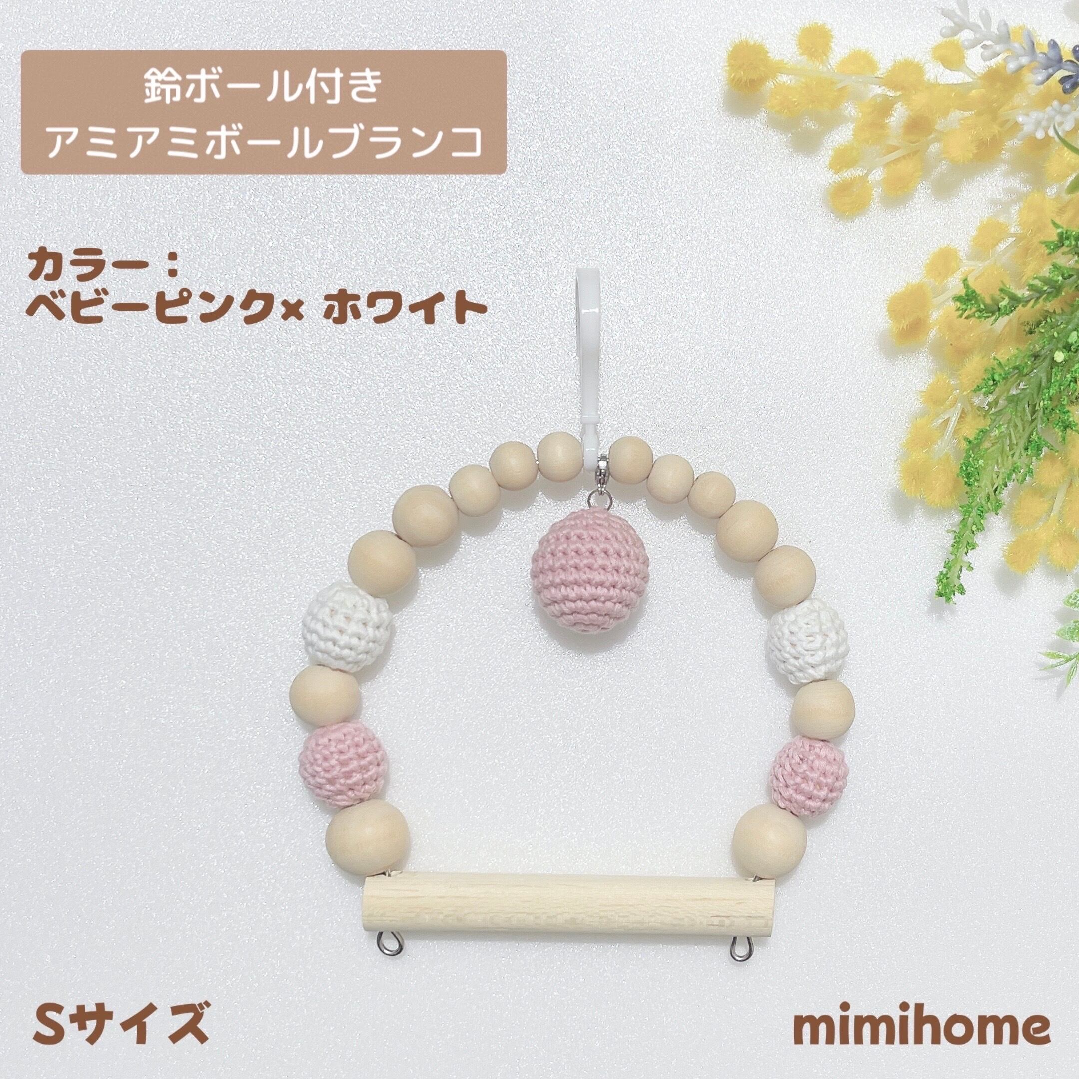 【鈴付き】アミアミボールブランコ☆カラー:ベビーピンク×ホワイト 鈴:ベビーピンク