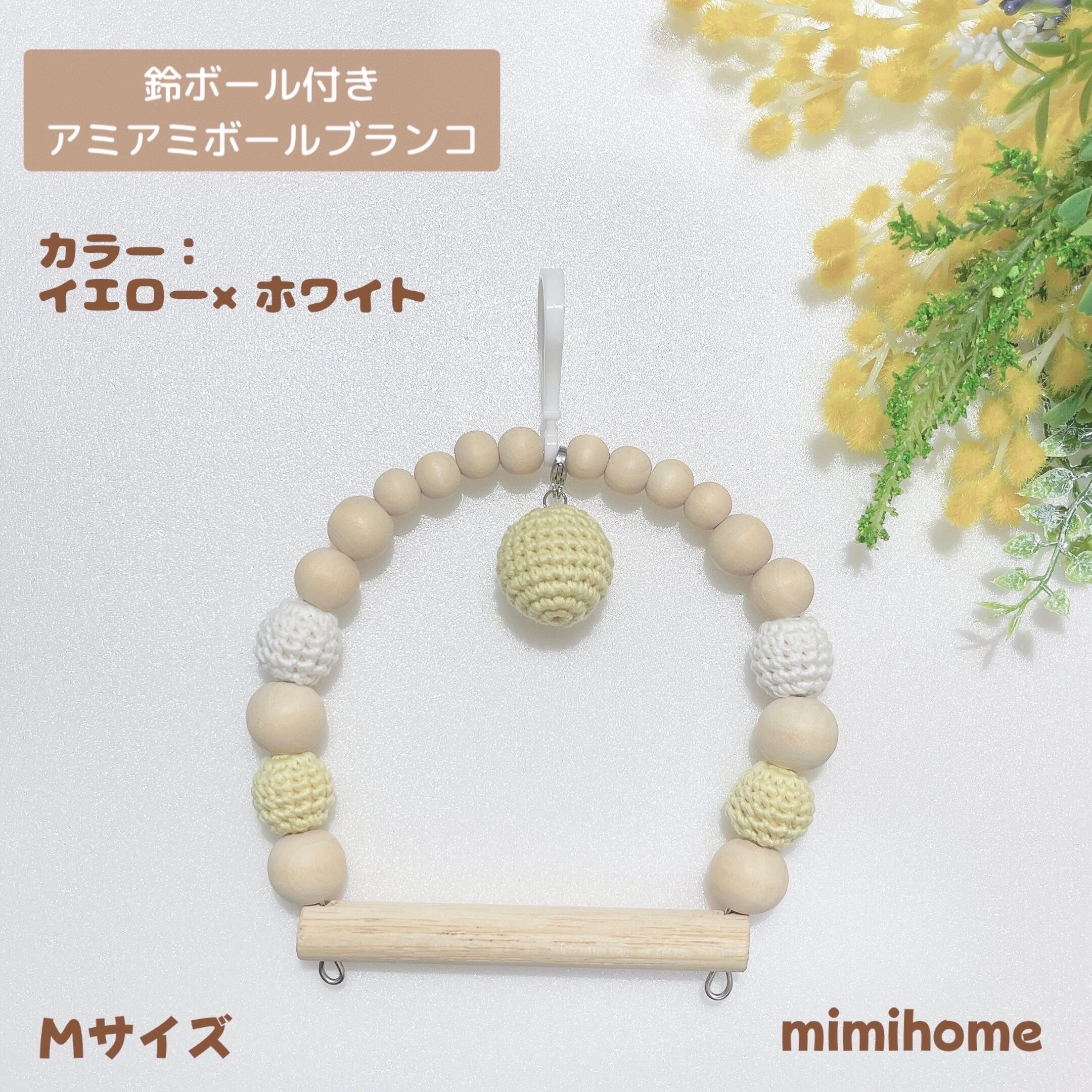 【鈴付き】アミアミボールブランコ☆カラー:イエロー×ホワイト 鈴:イエロー